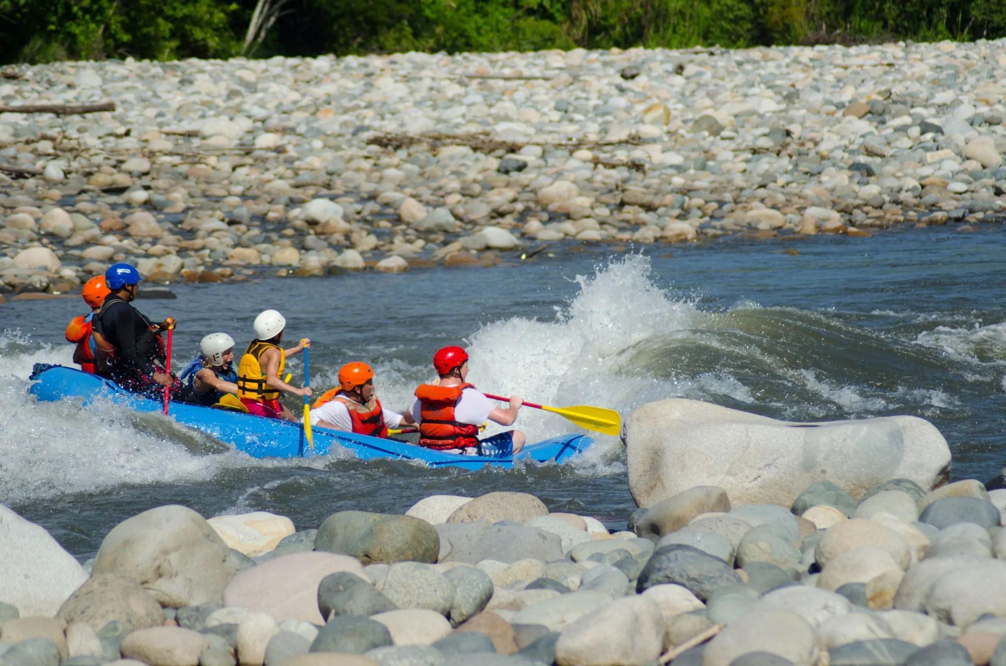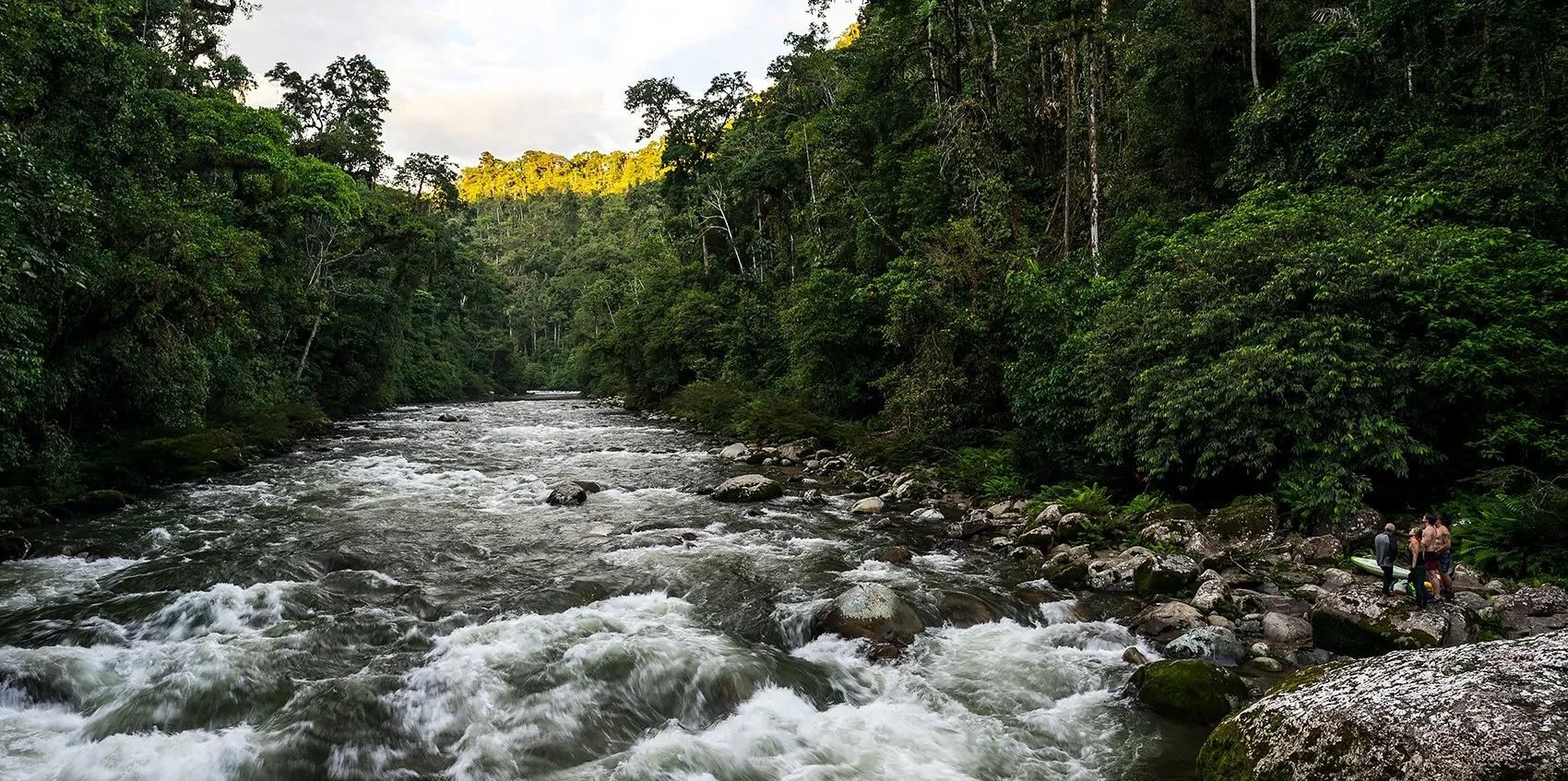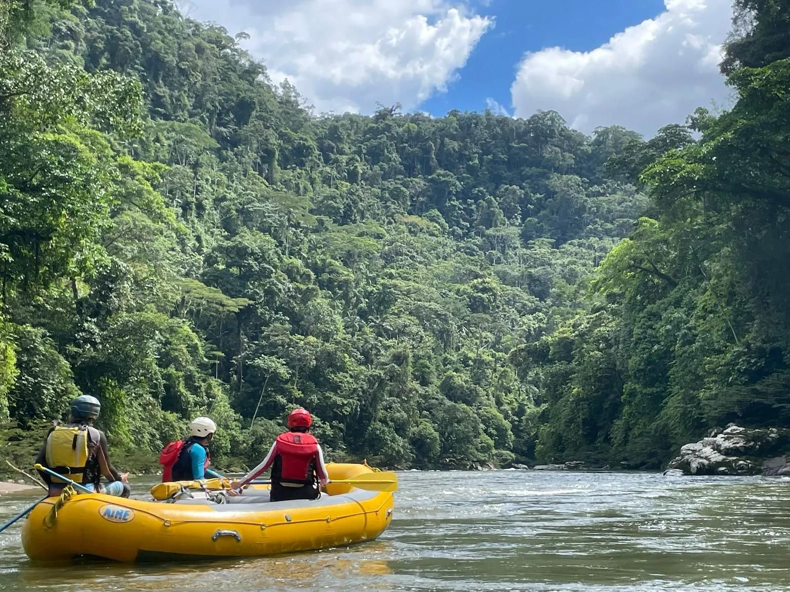 Begin your adventure with a thrilling rafting experience on the Jatunyacu River.
